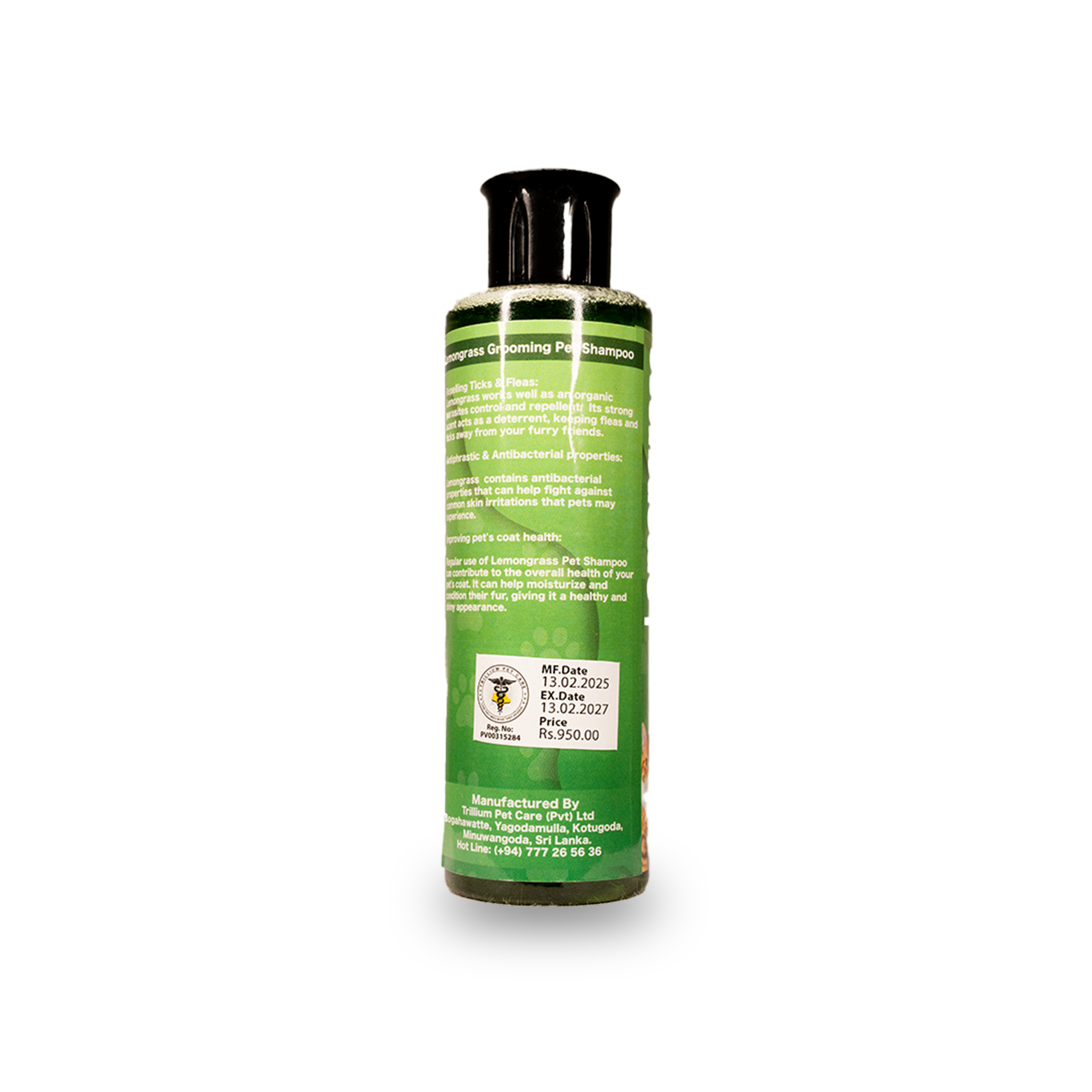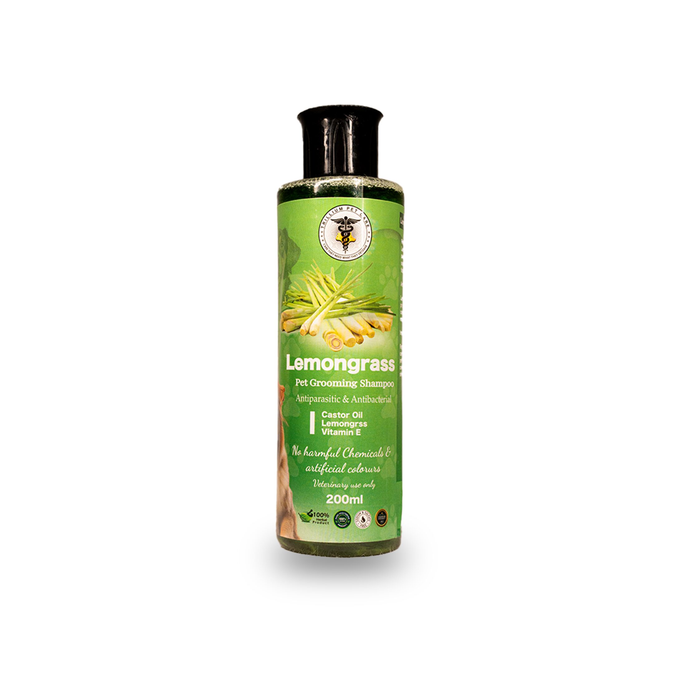 Give your pet the dual benefits of deep cleansing and natural protection with our Lemongrass Pet Grooming Shampoo. Formulated with a powerful blend of Castor Oil, Vitamin E, and Lemongrass, this shampoo gently cleanses your pet’s coat while offering antiparasitic and antibacterial protection.